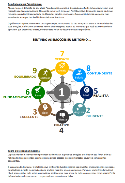 Este mapa revela como um indivíduo, com um perfil cognitivo dominante, acessa recursos e características de outros perfis influenciadores quando submetido a diferentes estados emocionais, e como isso se manifesta na alta ou baixa consciência.